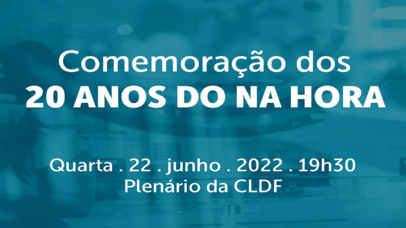 O Sindicato dos Servidores Públicos Civis da Administração Direta, Autarquias, Fundações e Tribunal de Contas do Distrito Federal (SINDIRETA) e a Associação dos Servidores e Empregados do Serviço de Atendimento Imediato ao Cidadão Na Hora (ASSOSEHORA) têm a honra de convidar para a comemoração do ANIVERSÁRIO DE 20 ANOS DO NA HORA.