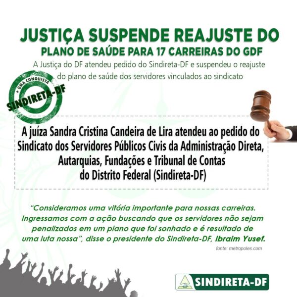 A Justiça do DF atendeu pedido do Sindireta-DF e suspendeu o reajuste do plano de saúde dos servidores vinculados ao sindicato