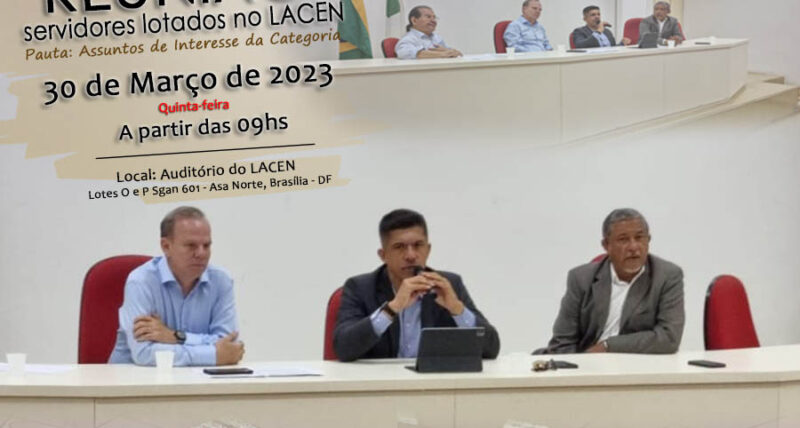 Reunião realizada com servidores do LACEN, nesta manhã dia 30 de março de2023, contou com a presença do Dr. Marconi de Oliveira (advogado) e do presidente do Sindireta-DF, Ibrahim Yusef, no auditório do LACEN, para tratarem de assuntos de interesse da categoria.